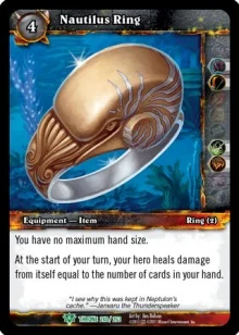 Nautilus Ring is huge here, because it lets us keep drawing beyond 7 in addition to giving us a big heal of its own. Odo’s Ley Staff lets us create a loop of healing and drawing until we run out of things to heal or decide to stop.