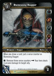 Druid is one of the best classes for removal, as it can efficiently deal with any card type. Hunter is no slouch either with its Snipe effects and big flashy ally takedowns. Of particular note here is Runesong Dagger, which can clear a board pretty easily given how many cards we’re drawing.