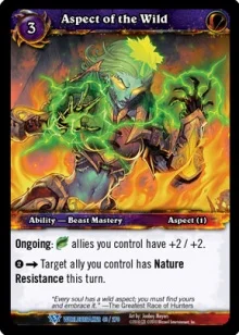 As far as deckbuilding rules, we get to combine Druid and Hunter cards, as well as our choice of Alliance or Horde. And like her Aspect siblings, she counts as a Monster, too.