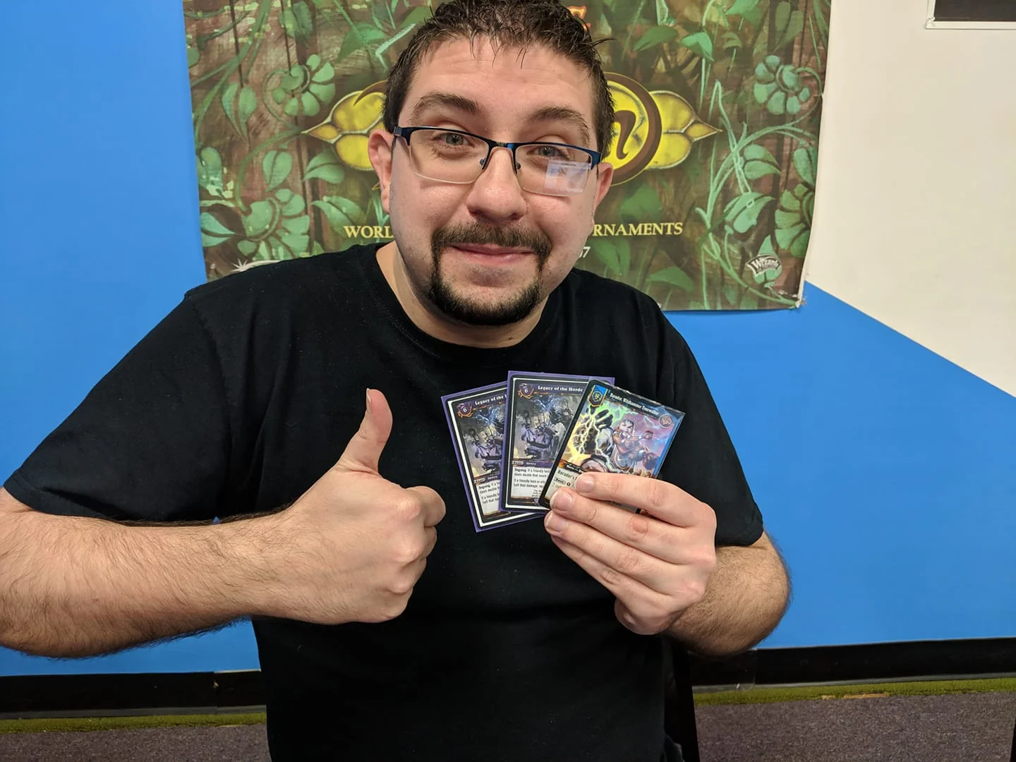 The finals left me facing Josh Wilson and his Mogdar monstrosity. I won the die roll and proceeded to start game one with a Seeds of Their Demise followed up with Naisha on Muln. Seeing a Keeper Sharus on the other side of the table, I decided to use my turn three to play Earthquake, killing the Keeper to deny a turn 3 play. But to my surprise a wild Monstrous Totem appeared that I could not immediately remove. My Edwin came down to the tune of Pygmy Pyramid tears as my opponent got his trigger, but no amount of protector could save the totem from Stealth. Another Monstrous Totem and a Keeper came out, but with Legacy of the Horde I was able to make a huge board swing while losing nothing in return. My opponent finally managed to get his Harmonize online with Muln but it was too late. Stealth Edwin, Barador’s Bolt, and Call of Lightning finished him off for a huge twenty-four damage swing.